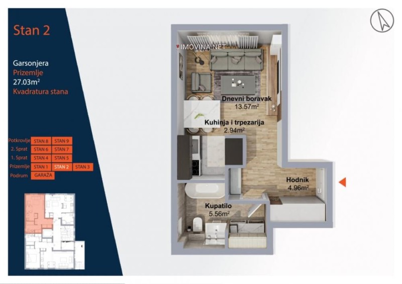 Predstavljamo vam funkcionalnu garsonjeru sa prostranom terasom od 50m2.