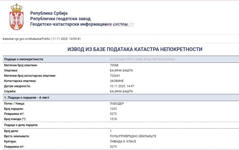 Na prodaju parcela od 52 ara, u Nacionalnom parku Tara, selo Zaovine. Parcela se nalazi u predelu izuzetnih prirodnih odlika, na izuzetnoj lokaciji. Naime, ova parcela izlazi na asfaltni put oko zaovinskog jezera. Nalazi se u neposrednoj blizini administratvnog centra sela (crkve, mesne kancelarije i prikljucaka za vodu i struju). Parcela se u katastru vodi kao livada, ali je obrasla niskim cetinarskim rastinjem. Odlikuje se prirodnim padom od asfaltnog puta ka zaovinskom jezeru. Sa obe strane parcele, gledano niz padinu, nalaze se planinski potocici, tako da je ujedno bogata i vodom. Kao takva predstavlja savrseno mesto za ulaganje, za sve one sa vizijom. Za porodice koji tragaju za prirodnim rajem, dusevnim mirom i shvataju znacaj neophodnosti konekcije sa prirodom, ovo je savrseno mesto za vikendicu ili kucu. Ovakva prilika za sopstvenim parcetom zemlje u netaknutoj prirodi jednostavno se ne propusta. Parcela je u vlasnistvu 1/1!