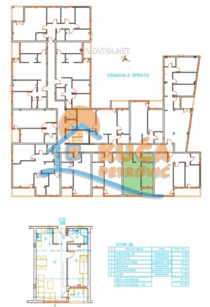 Na prodaju stan u novogradnji u Mokranjčevoj spratnosti Po+P+4, projektovane površine 45,14m2. Nalazi se na trećem spratu u zgradi sa liftom. Stan je po strukturi je jednoiposoban i sastoji se od ulaznog hodnika, dnevne sobe sa trpezarijom i kuhinjom, spavaće sobe, kupatila, i terase. Stanu pripada i podrumska prostorija. Fasada je od kamene vune 10cm. Fasadna stolarija je od višekomornih PVC profila, sa odgovarajućim okovima i aluminijumskim roletnama sa termo ispunom , zastakljena niskoemisionim vakumiranim staklima. Unutrašnja stolarija - sobna vrata od furniranog medijapana i sigurnosna vrata sa atestom na vodootpornost. Na podovima je laminat debljine 10mm, visine do 8cm. Keramika je granitna u prvoj klasi. Grejanje je u vidu mermernih grejnih tela u kombinaciji sa kaloriferima (instalirano u svakoj prostoriji), priključena na el. instalaciju stana, sa odabranom vrstom termostata u skladu s namenom prostorije i sa ugradnjom po jednog klima uredjaja za svaki stan, sa namenom za letnji period. Parking mesta su na parceli i dodatno se naplaćuju. Rok završetka je kraj 2027. Godine. Za kupce prvog stana postoji povrat PDV-a i moguća je kupovina na kredit. Ovo je samo deo naše ponude, za vise informacija, stojimo vam na raspolaganju.