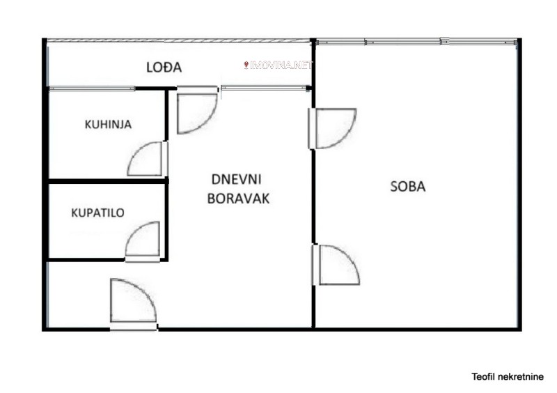 Sastoji se od prostrane sobe, kuhinje, kupatila, velike trpezarije koja može biti i dnevna soba, i lodje od 6 kvadrata.