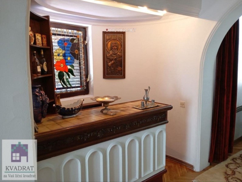 Kuća se prostire na tri etaže. Suteren čine dve prostorije pogodna za ostavu, radionicu, teretanu ili druge namene, uz manje kupatilo. Prizemlje čine velika, svetla dnevna soba, prostrana kuhinja sa trpezarijom, dodatna soba i izlaz na veliku uređenu terasu – idealnu za odmor i porodična okupljanja. Sprat se sastoji od četiri komforne spavaće sobe, kupatila, a dve sobe imaju izlaz na terasu sa lepim pogledom. Kuća je vrlo kvalitetno građena, sa očuvanom drvenom stolarijom, kombinacijom parketa i keramike u enterijeru i poseduje sve uslove za udoban porodični život.