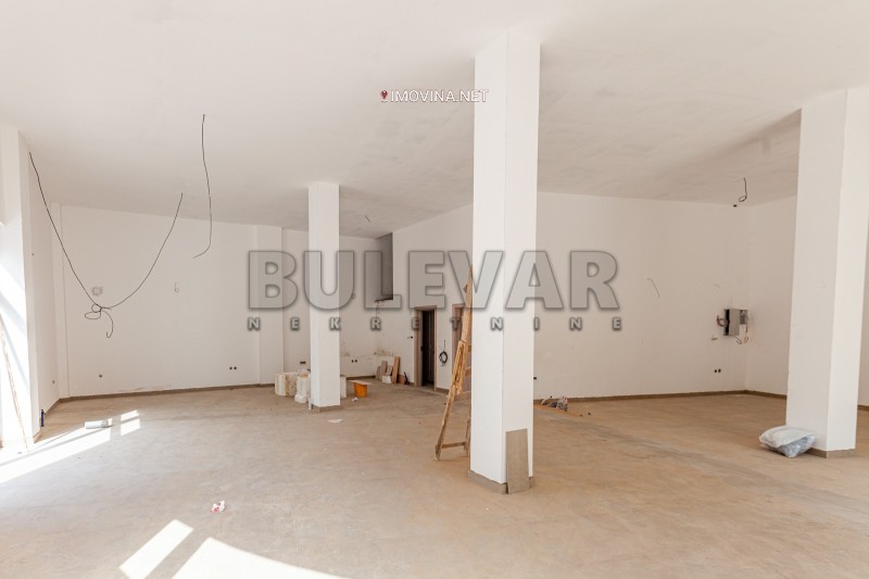 Uknjižen je na 149m2, sa dodatom galerijom 20m2. Visina lokala je 4,5m. Sastoji se od jedne prostorije, dva mokra čvora i čajne kuhinje ili kancelarije. Galerija daje mogućnost proširenja prostora i korišćenja u različite svrhe.