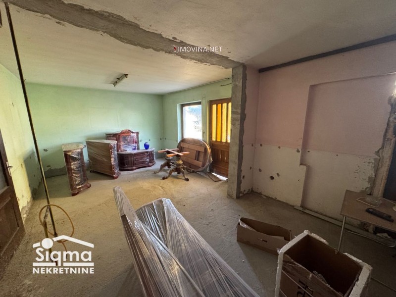 Parcela od skoro 11 ari i 42m uličnog fronta. Na njoj su uknjiženi stambeni porodični objekat i 4 poslovne zgrade. Kuća je građena od čvrstog materijala, sastoji se od prizemlja i potkrovlja. Osnova kuće je 100m2. Po ulazu se nalazi hodnik sa stepeništem koji vodi u sve prostorije. U prizemlju postoji jedna velika ulična prostorija, dnevni boravak sa kuhinjom i renovirano kupatilo. Postavljen je laminat i drvena stolarija. Na spratu postoje 4 sobe koje imaju postavljenu stolariju. Grejanje je na struju. Odlično za stanovanje.