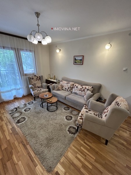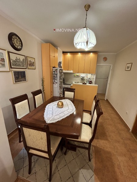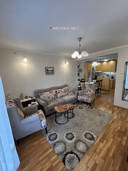 Stan se sastoji od ulaznog hodnika, prostranog dnevnog boravka povezanog sa kuhinjom i trpezarijom i izlazom na terasu, tri spavaće sobe i kupatila. Terasa je jako funkcionalna i komforna, orijentisana suprotno od ulice i okružena zelenilom. Stan je renoviran, uredan i svetao.