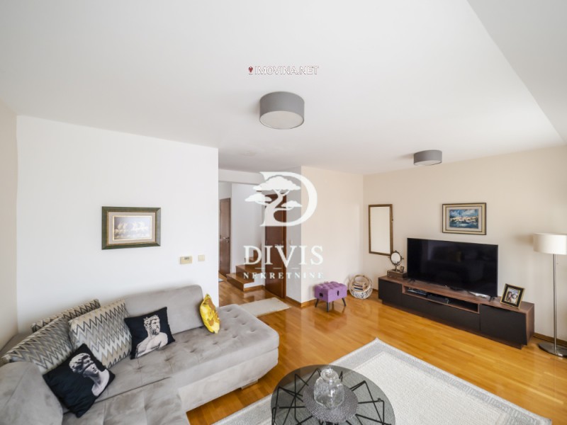 Stan je organizovan kroz dva nivoa, što omogućava jasno razdvajanje dnevne i spavaće zone. Na donjem nivou nalazi se dnevni boravak sa trpezarijskim delom i kuhinjom, dok su na gornjem nivou smeštene spavaće sobe i terasa.
