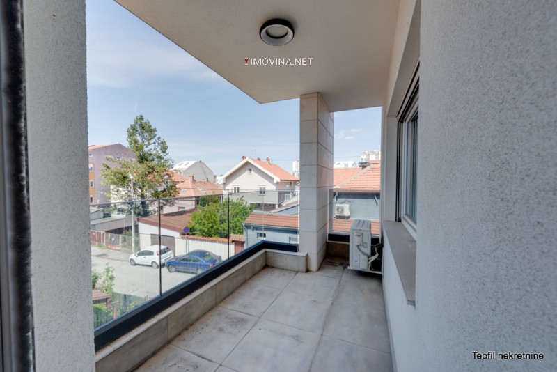 U novijoj, izuzetno kvalitetnoj, četvorospratnoj zgradi imamo u ponudi extra luksuzan stan na prvom spratu. EG (na struju), nečujni lift-Schindler (kojim se silazi do garaže), sigurnosni sistem, javljači dima i požara, interfon, video nadzor…