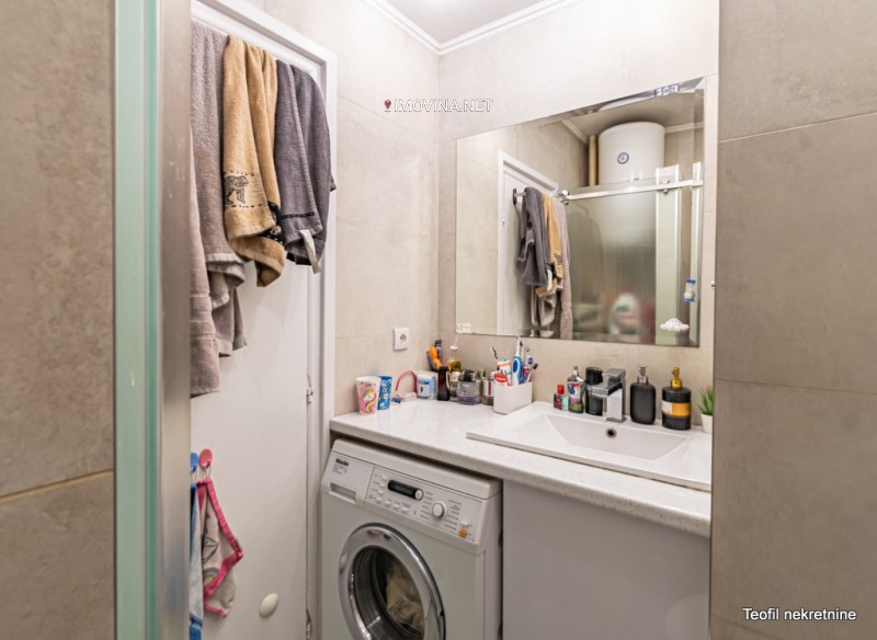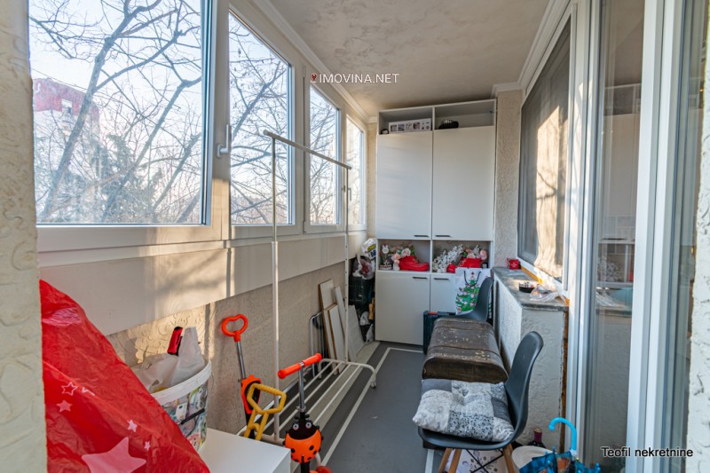 Iz kuhinje se izlazi na lođu od 6kvm, koja je zastakljena u pvc ,sa ugradnim plakarom. Druga lođa od 5kvm ima izlaz iz spavaće sobe. U svim prostorijama ugradni plakari, u kupatilu tuš kabina, Geberit, a toalet Kulir traventino.