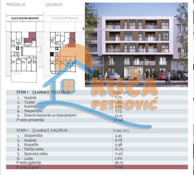 Na prodaju trosoban stan u prizemlju zgrade, sa galerijom, u izgradnji u Čairu, na atraktivnoj, mirnoj i prestižnoj lokaciji. Izgradnja zgrade je po najsavremenijim standardima moderne gradnje, Po +Pr+G+3 gde će ceo lobi prostor biti u oblogama i enterijerski urađen a prednja strana fasade ventilisana od Swiss pearl ploča, sa video nadzorom i video interfonom. Stan se sastoji od ulaznog hodnika, dnevne sobe sa trpezarijom, kuhinje, toaleta u prizemlju i dve spavaće sobe, kupatila i lođe na galeriji. Stan ima i pripadajući deo dvorišta - bašte (oko 20-ak m2). Na podovima je troslojni parket velikog formata sa visokim lajsnama, keramika velikog formata, ugrađen smart tanki bojler, u dnevnoj sobi inverter klima a grejanje centralno, sa kalorimetrima. Spoljašna stolarija je aluminijum - drvo sa tri stakla i punjena argonom, sa termoizolacionim roletnama na elektro pogon. Planirani završetak radova najkasnije 15.08.2027. Mogućnost kupovine garažnih parking mesta i povraćaja PDV -a za kupce prvog stana. Za više informacija pozovite agenciju.