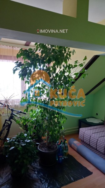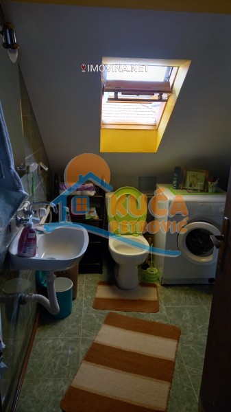 Na prodaju lepo uređeno i prostrano potkrovlje stan u kući objekat ima suteren, vp, sprat i potkrovlje. Sastoji se od ulaznog hodnika, dnevne sobe, izdojene kuhinje sa trpezarijom, tri spavaće sobe, kupatila i prostrane terase. Na podu je laminat i kvalitetna keramika, stolarija je pvc a grejanje na pelet za ceo objekat. Krovna izolacija i stolarija kvalitetna. Objekat uknjižen, potrrebno je uraditi etažiranje. Prodaja za gotovinu.