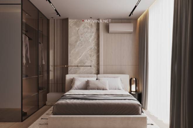 Po projektu renomiranog arhitektonskog studija urađeno je kompletno enterijersko opremanje, pa se stan prodaje potpuno namešten, modernim i vrhunskim materijalima i nameštajem. Stan je izuzetno svetao, dvostrano orijentisan, sa velikim staklenim površinama, visinom plafona 3,20 m, kvalitetnom unutrašnjom stolarijom, luksuznom granitnom keramikom u kuhinji i kupatilima, i ambijentalnom rasvetom. Kao takav, pruža izuzetan komfor i funkcionalnost za višelčanu porodicu.