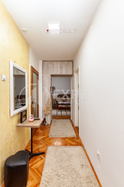 Prodaje se stan uknjižene površine 65m2 plus dve terase oko 10m2. Stan se nalazi u centru grada ali nije na glavnoj saobraćajnici tako da je zaklonjen od buke. Nalazi se u starijoj kvalitetnoj zgradi bez lifta na poslednjem 4 spratu. Postoji mogućnost da budući vlasnik napravi potkrovlje iznad stana za to postoje i pravne i tehničke mogućnosti,pa da ovaj stan pretovri u dupleks. Stan je renoviran u skorije vreme i nema dodatnih ulaganja. Sastoji se iz ulaznog hodnika iz koga je ulaz u spavaću sobu kuhinju kupatilo i dnevnu sobu. U sklopu dnevne sobe je i trpezarija ,iz nje je ulaz u dve spavaće sobe od kojih jedna ima terasu one su istočne orjetacije. Velika terasa od oko 10m2 se proteze celom zapadnom stranom stana. U stanu postoje inverter klime, centralno grejanje je isključeno. Stan je uknjižen vlasništvo 1 kroz 1, moguća je kupovina za kredit.