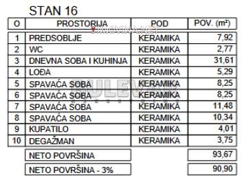 Na prodaju stan u novogradnji u blizini niške pivare, projektovane površine 93.67 m2. Stan je po strukturi četvoroiposoban i sastoji se od ulaznog hodnika, dnevnog boravka sa trpezarijom I kuhinjom,četiri spavaće sobe, kupatila, toaleta i terase. Stanu pripada i podrumska prostorija. Nalazi se u novogradnji SU+P+2 koju čine dve lamele, sa dva ulaza i dva lifta. Građena je skeletnim armirano-betonskim sistemom sa ispunom standardnim blokovima tako da zidovi nisu noseći, a krov je jednovodni, kos. Zidovi između stambenih jedinica su debljine 25 cm što obezbeđuje dobru zvučnu izolaciju. Spoljna fasada je Demit sa izolacijom 10 cm kamene vune. Spoljašnja stolarija je PVC u antracit boji sa termopan staklima i roletnama, dok je unutrašnja stolarija drvena. Na svim podovima predviđene su keramičke podloge. Grejanje je podno, na gas, predviđeno kao centralno. Parking mesta sun a parceli i dodatno se naplaćuju. Rok završetka je kraj 2027. Godine. Za kupce prvog stana postoji povrat PDV-a i moguća je kupovina putem stambenog kredita. Ovo je samo deo naše ponude, za vise informacija, stojimo vam na raspolaganju.