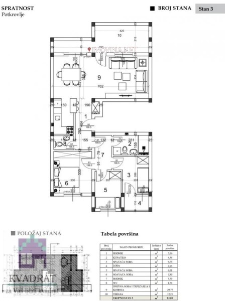 Dostupne su površine od 40.68m², I sprat (2.100€/m²) i 82.09m², II sprat (1.900€/m²)